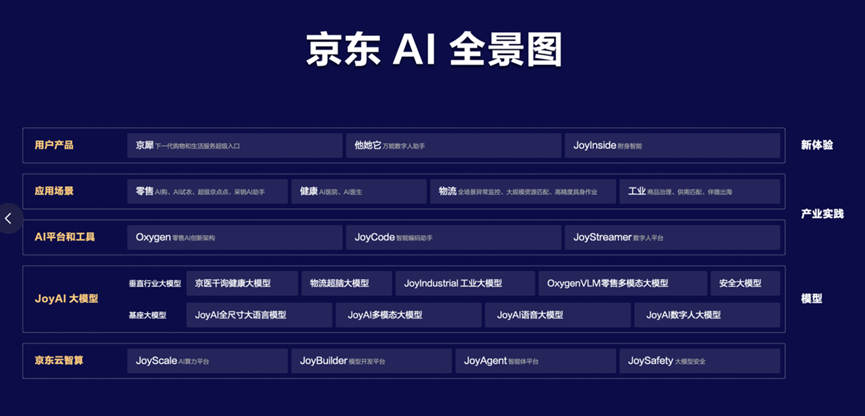 以及在两款产品底层,也更是本次大会重磅亮相的JoyAI京东基础大模型,在这次大会上,一系列从3B到750B的全尺寸模型都被重磅发布,同时涵盖语言、语音、图像与多模态、数字人等多种模态。通过算法层面的创新,JoyAI大模型在清华大学联合斯坦福大学等建立的大模型评测基准Rrbench上(0924)结果为76.3,推理能力国内第一,超越所有国内的大模型,位列全球第二名。